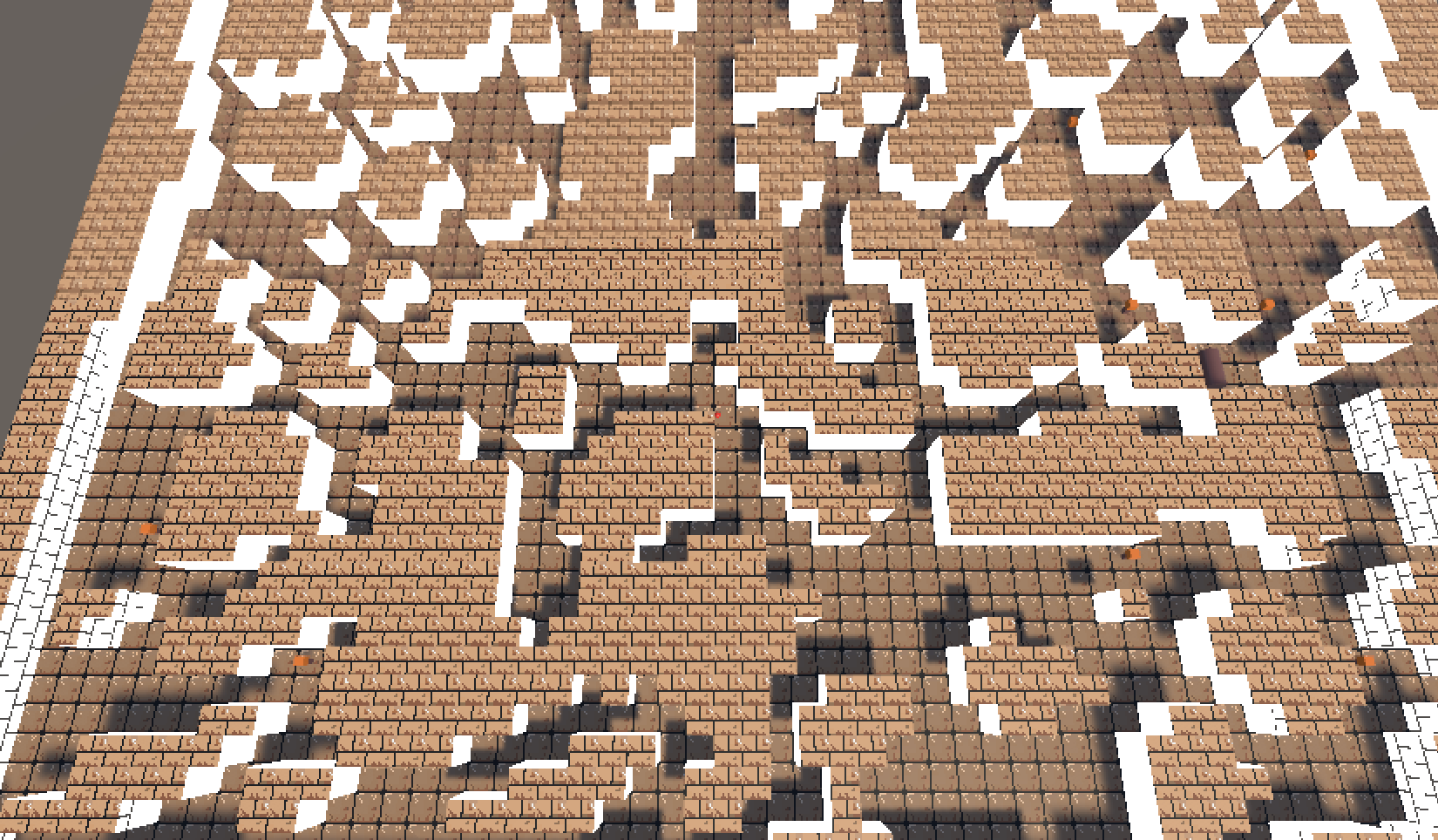 Procedurally generated dungeon containing rooms and hallways. The actual maze generation utilizes cellular automata (similar to Conway's game of life) using the 4-5 rule for 5 iterations. Additionally flood fill algorithms are utilized to ensure room connectivity. With the program, users can traverse the dungeon and toggle a top-down to first person POV. Textures and torch/chest prefabs were designed by myself.